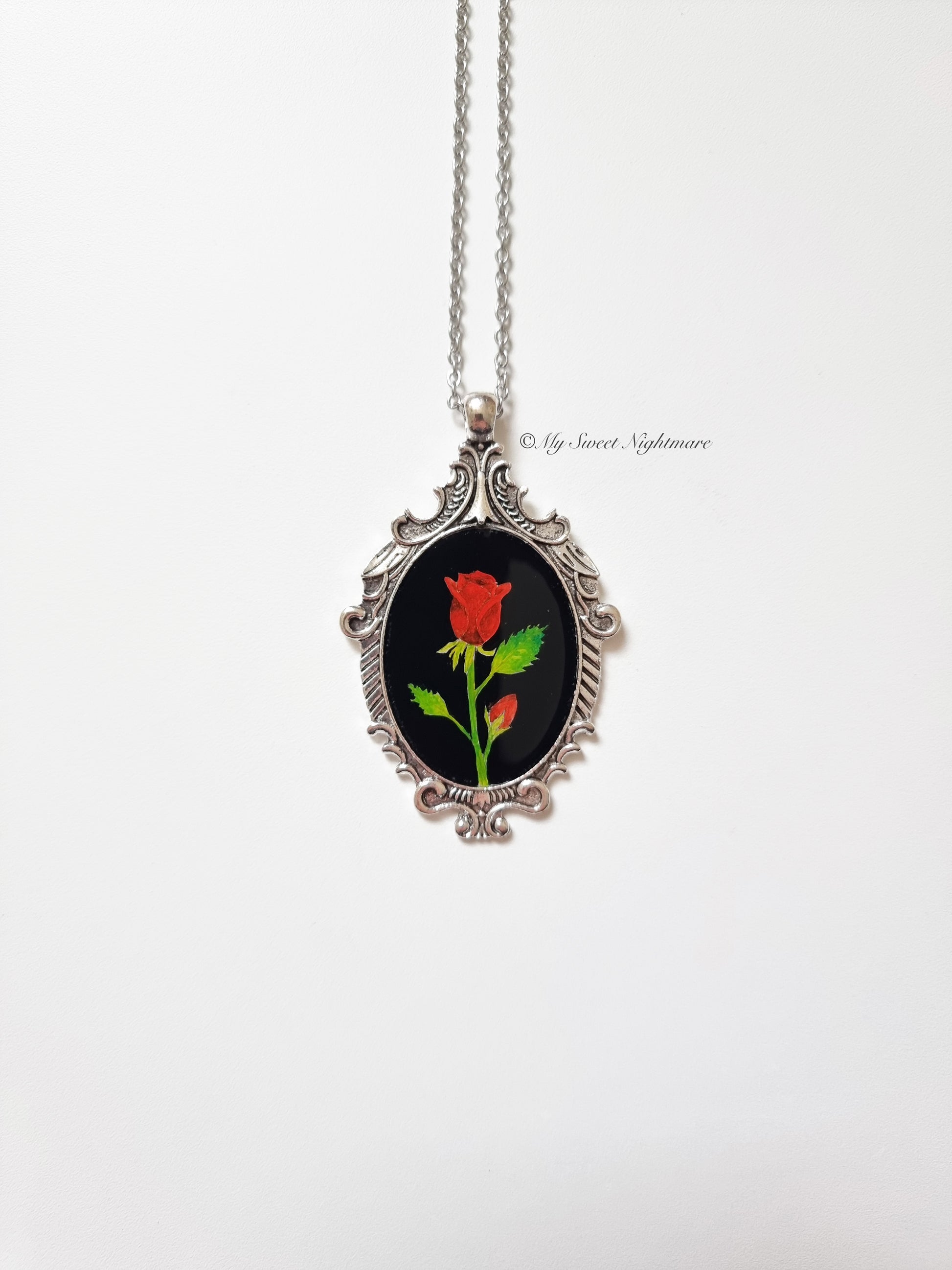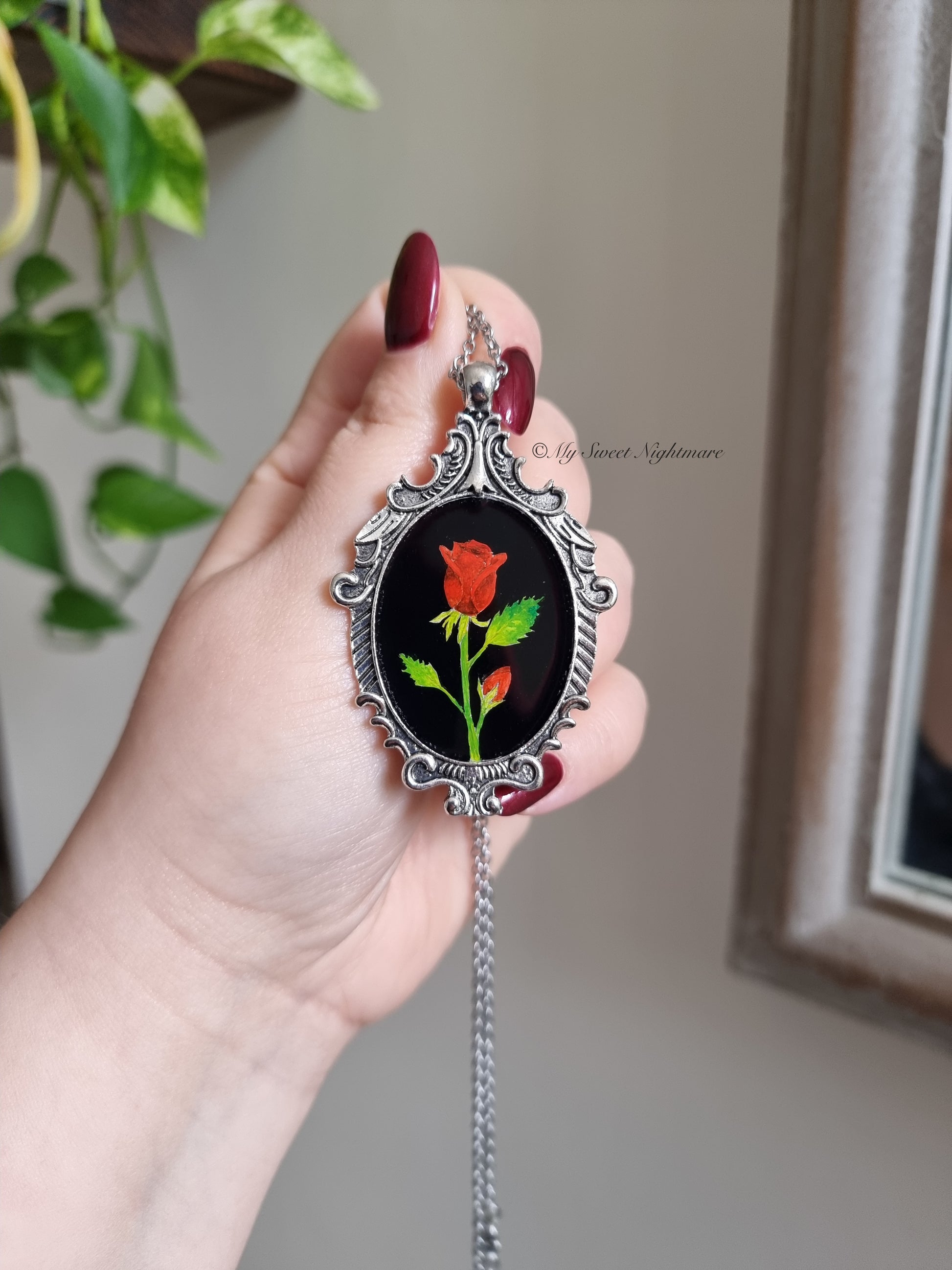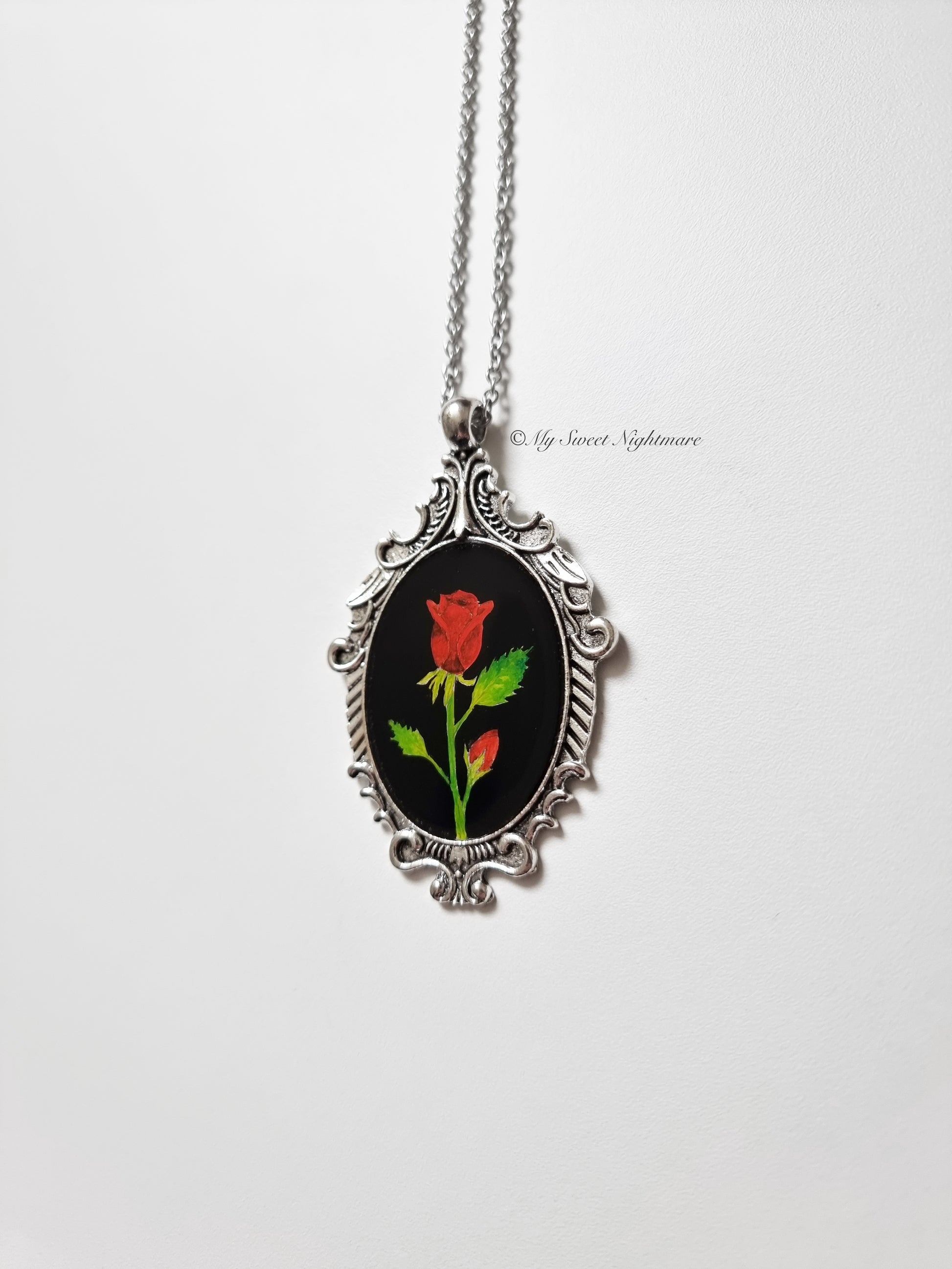 Cammeo gotico dipinto a mano con rose rosse